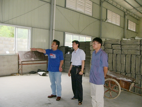 2008年8月19日至20日,廣西建科院副調(diào)研員陳旭能等一行人到東蘭縣廣西建科院泡沫玻璃廠檢查工作。期間聽取了泡沫玻璃廠負(fù)責(zé)人張淵的工作匯報(bào),一同下到工廠車間了解產(chǎn)品的生產(chǎn)及經(jīng)營(yíng)情況;并對(duì)有關(guān)問題提出指導(dǎo)性意見。