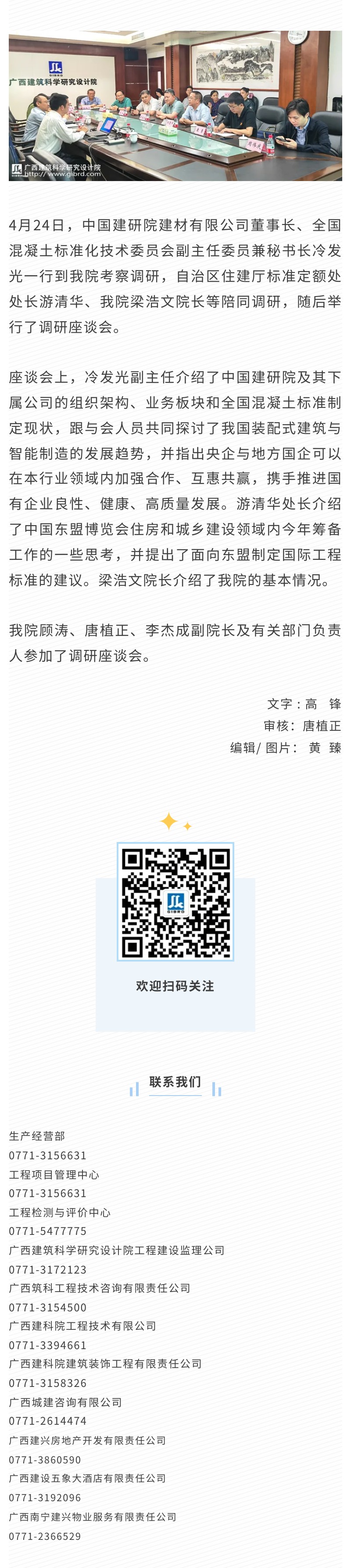 全國混凝土標準化技術委員會副主任委員冷發光一行到我院調研