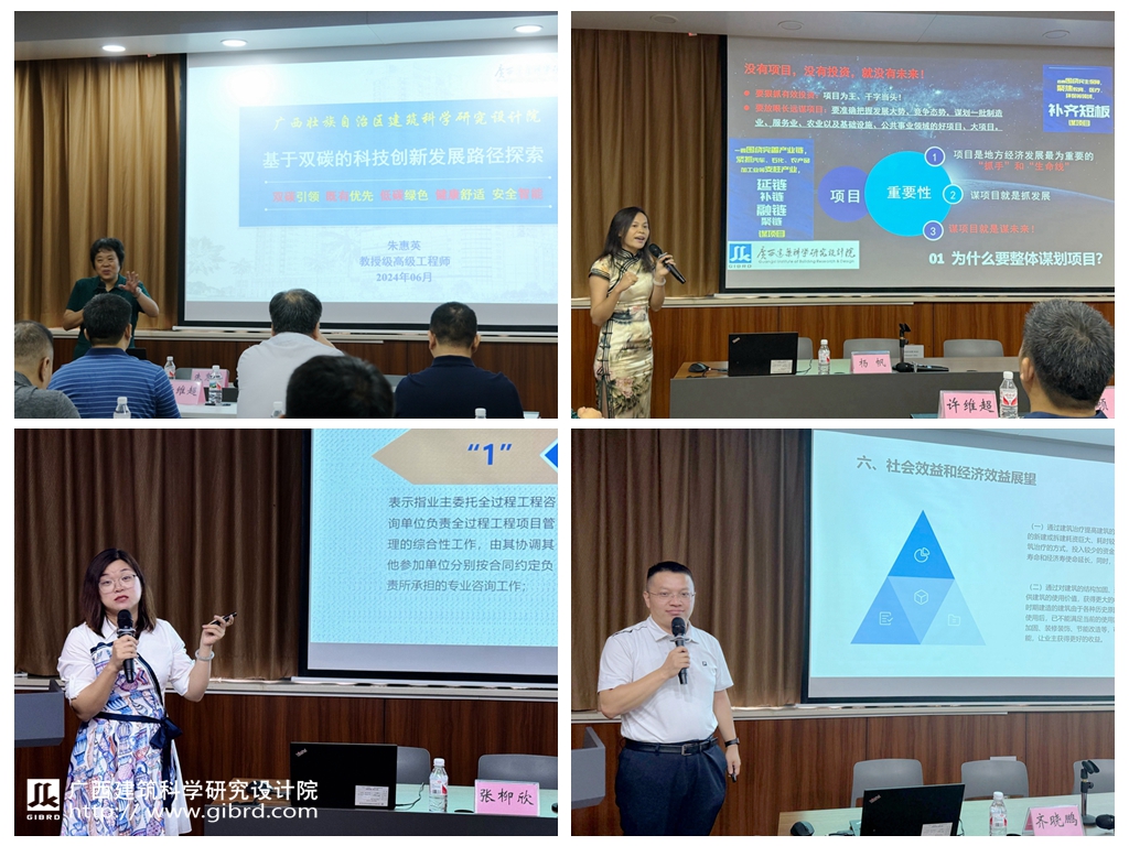 在論壇上,院顧問總工朱惠英作了“廣西建科院在綠色節能領域的科研創新成果與未來發展方向”的主題報告,綠色建筑研究設計所所長楊帆作了“城市更新與新城鎮化”主題分享,工程項目管理中心副主任張柳欣作了“全過程咨詢管理的酸甜苦辣”主題分享,院技術公司副總經理齊曉鵬作了“廣西建科院‘建筑醫院‘構想”主題分享。大家圍繞論壇主題,從不同角度和層面,分享了行業創新發展的經驗,共同探索行業前沿與瞻望發展新趨勢,為企業科技創新發展獻計獻策。
