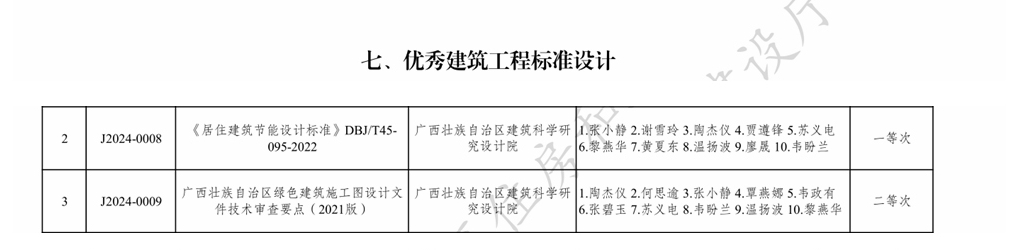 近日,自治區(qū)住房城鄉(xiāng)建設廳公布了2024年度廣西優(yōu)秀工程勘察設計成果等次評定結果。我院共有10個項目獲獎,其中:優(yōu)秀(公共)建筑設計6項:一等獎1項、二等獎3項、三等獎2項;優(yōu)秀建筑工程標準設計2項:一等獎1項、二等獎1項;優(yōu)秀水系統(tǒng)工程設計1項:三等獎1項;優(yōu)秀村鎮(zhèn)建筑與環(huán)境設計1項:三等獎1項。
