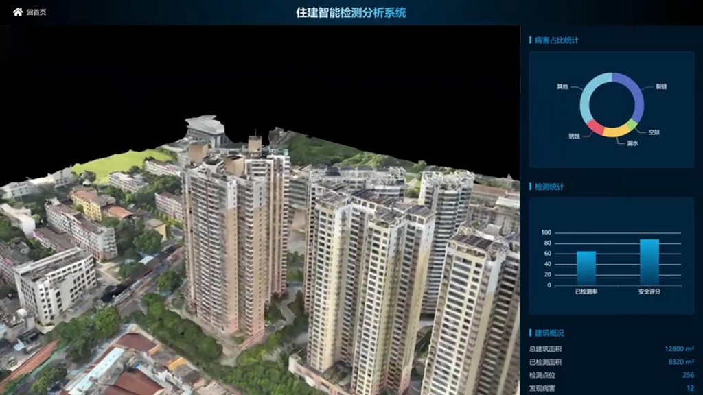 該系統(tǒng)集成建筑外圍護(hù)安全檢測與評估的全流程管理,主要系統(tǒng)功能包括:建筑外圍護(hù)圖像獲取及標(biāo)準(zhǔn)化預(yù)處理;利用先進(jìn)的AI算法,自動(dòng)識別和定位建筑外墻的各種病害(如裂縫、空鼓、滲水等);對建筑信息、檢測數(shù)據(jù)、評估結(jié)果等海量數(shù)據(jù)進(jìn)行系統(tǒng)化管理,確保數(shù)據(jù)的完整性和可追溯性;通過圖表、三維模型等方式將數(shù)據(jù)可視化;提供標(biāo)準(zhǔn)化的接口,支持與無人機(jī)、傳感器等檢測設(shè)備的對接,以及與其他管理系統(tǒng)的數(shù)據(jù)交換。