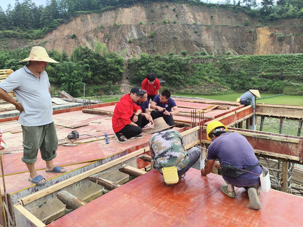 技術(shù)幫扶團(tuán)隊(duì)在給吳廣平家的房屋作施工指導(dǎo)
