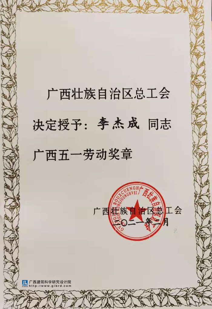近日,我院副院長李杰成榮獲廣西五一勞動獎章,設計一所的扶綏縣棚戶區改造規劃建筑設計項目榮獲2020年全區棚戶區改造工程建設示范性勞動和技能競賽優勝班組,檢測一所工會小組榮獲全區住房城鄉建設系統先進職工小家。