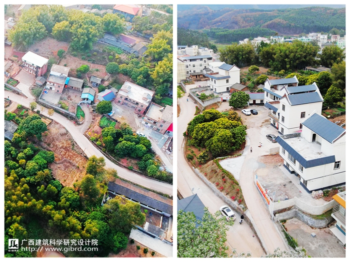 港南區(qū)示范點(鹿塘屯)改造前后航拍圖
