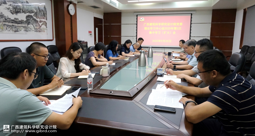 9月25日,我院召開黨委理論學習中心組2025年第3次集中學習(擴大)會。會議以“深入學習貫徹習近平總書記關于廣西工作論述的重要要求和習近平經濟思想,聚焦‘創新驅動推動建筑行業高質量發展’”為核心主題,立足我院專業技術優勢,深入研討服務廣西建筑業轉型升級的實踐路徑與責任擔當。院黨委副書記、院長顧濤主持會議并講話。院領導唐植正、龐耀國、李華紅、潘利,黨委委員、各黨支部書記及相關管理部門負責人參加會議,共同為推動行業高質量發展凝聚思想共識、擘畫行動藍圖。