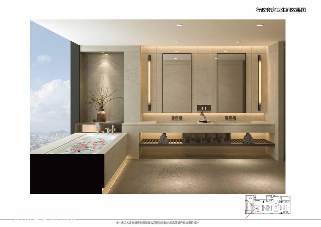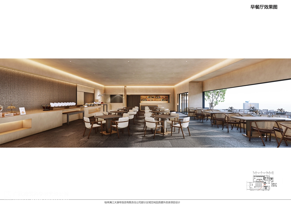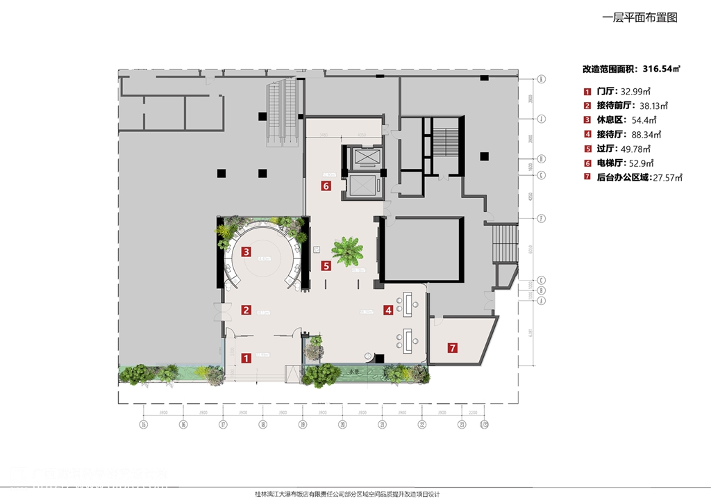 改造方案尊重場地及原始建筑條件,適度改造,秉持順應自然、傳承文化、寫意當代、彰顯高新的設計理念,打造“山水人文詩,城市新客廳”,與自然山水交融,體現桂林特色的具有地標性的全新酒店。