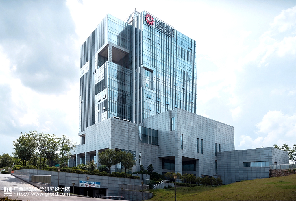建筑強(qiáng)調(diào)以純凈的幾何形體和豐富的建筑空間塑造優(yōu)美的建筑形象,主入口開放式門廊采用干欄式傳統(tǒng)建筑的空間組織形式,結(jié)合門廊立柱裝飾和幕墻遮陽構(gòu)件形成壯族螞拐蛙人的傳統(tǒng)文化韻味和現(xiàn)代氣息柔和,屋頂機(jī)房與散熱塔采用重檐的形式,賦予建筑極強(qiáng)的文化內(nèi)涵,強(qiáng)烈體現(xiàn)了建筑形象的地域文化和時(shí)代感,強(qiáng)烈宣示了建筑形象的穩(wěn)重感、份量感和莊嚴(yán)感。